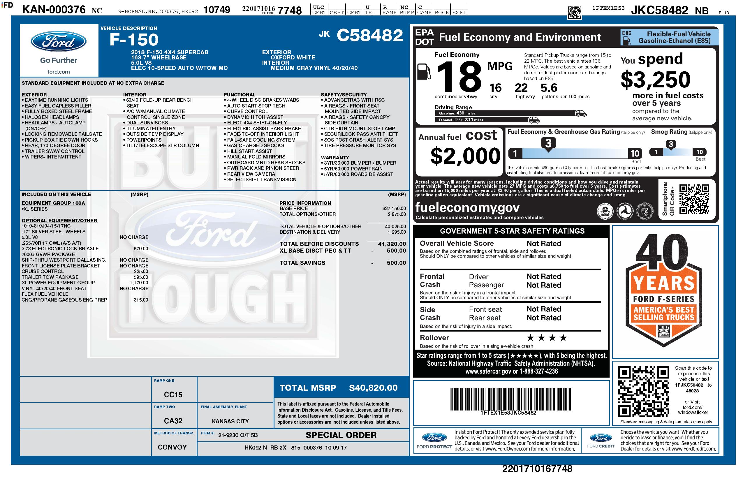 This 2018 Ford F150 4x4 Supercab Long Base is One Owner North Carolina Vehicle with 8 service history records reported to CarFax. This vehicle is equipped with a the XL Power Package, Cruise Control, CNG/Propane Gaseous Eng Prep, RearView Camera, Bed Liner, Tow Package, Trailer Tow Package, Trailer Sway Control, Step Rails, 17'' Wheels and so much more. Our mission is to provide the highest quality vehicle at the best price. We strive to offer the best customer service possible by treating you as our number one priority. Come by today for your no obligation test drive and see how Primetime Motors of Garner will treat you like family and make you feel like you are right at home.