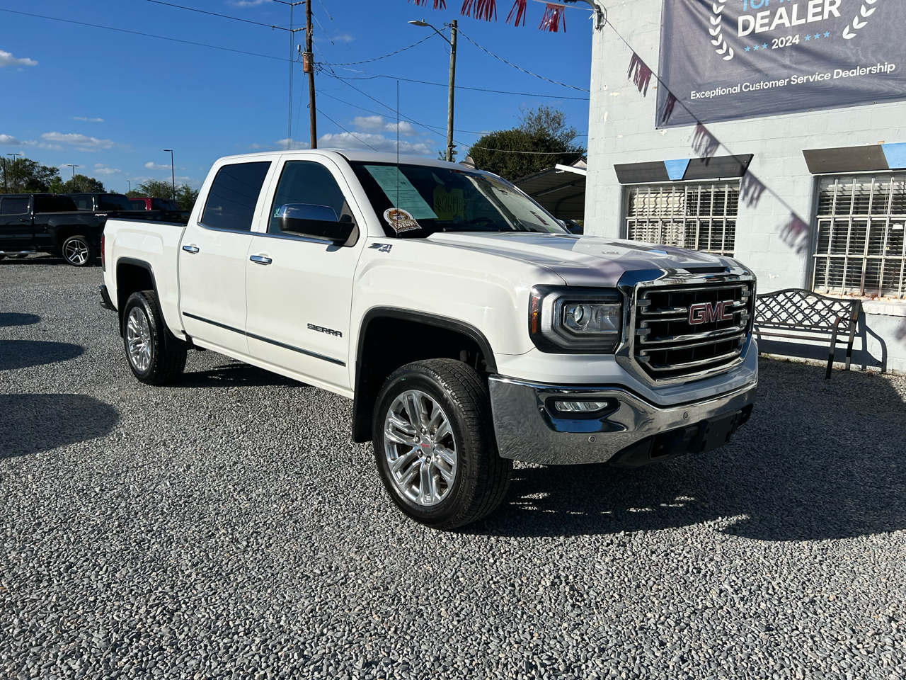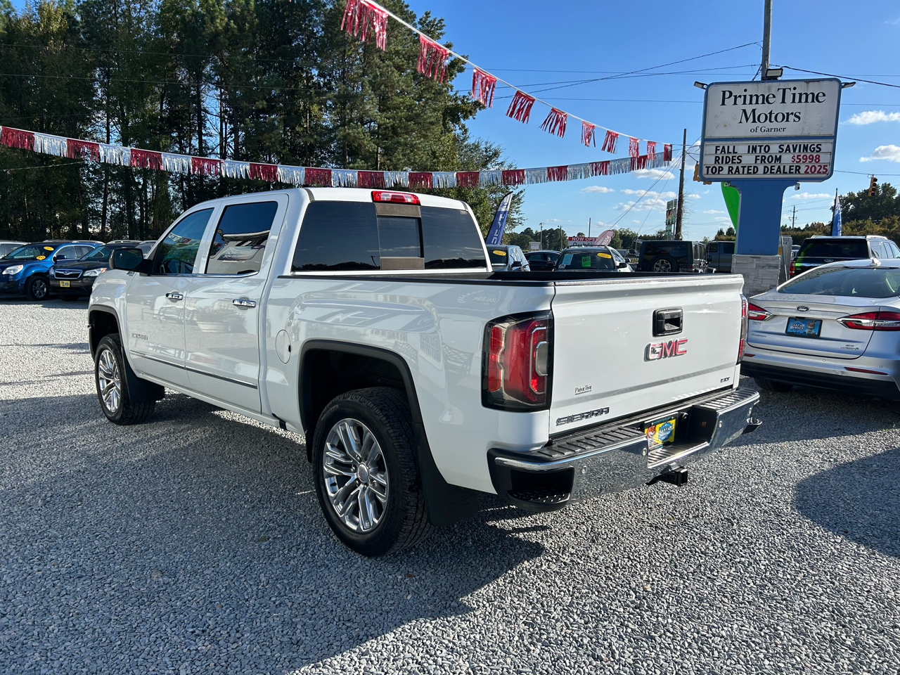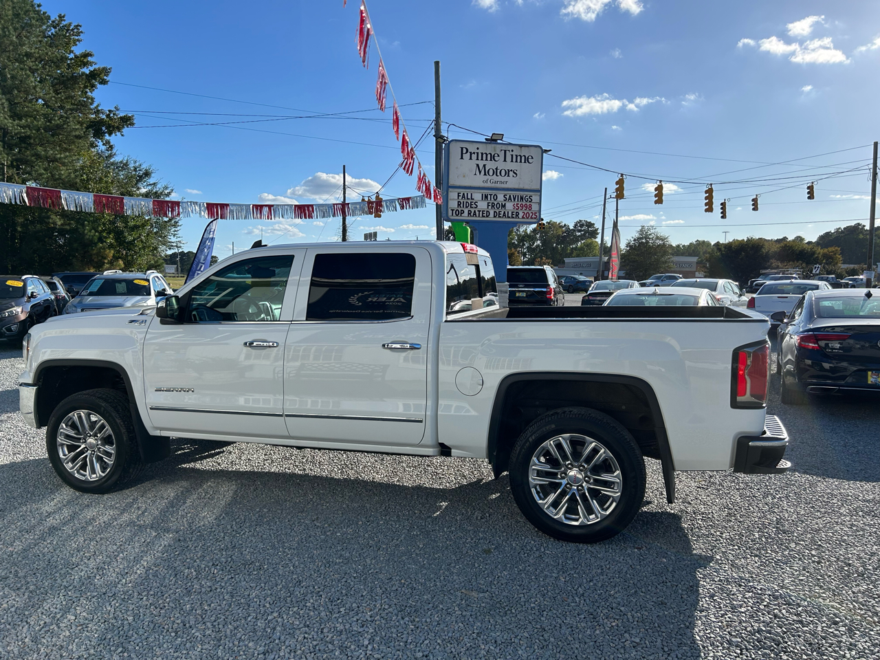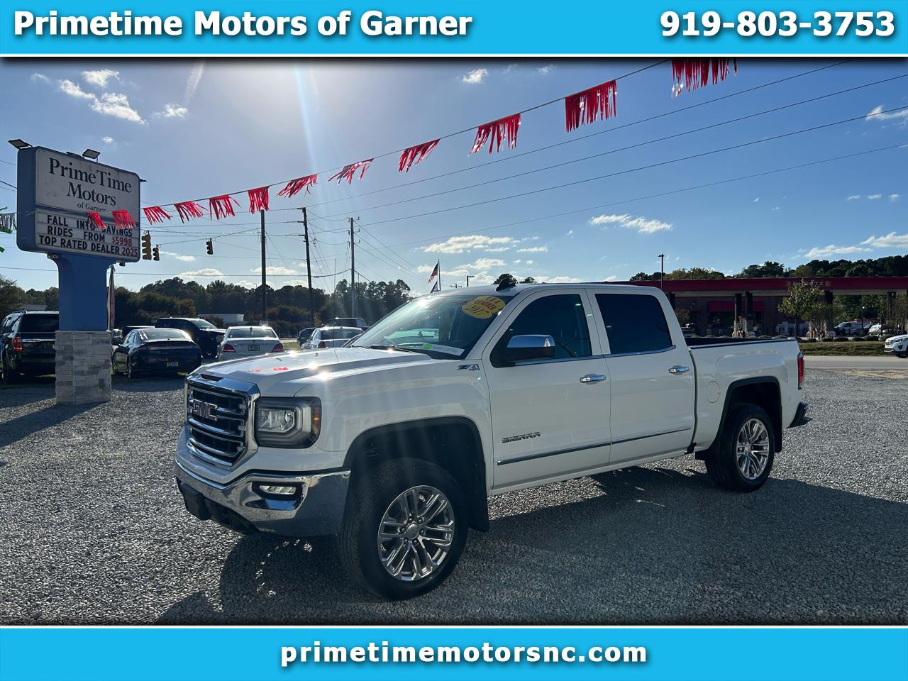 This 2017 GMC Sierra 1500 4WD Crew Cab SLT is a 2 Owner North Carolina Vehicle with no accidents or damage and 12 service history records reported to CarFax. This vehicle is equipped with Heated and Cooled Power Leather Seats, 8'' Color Touchscreen, Navigation, Apple CarPlay, Android Auto, Bluetooth, Enhanced Driver Alert Package, Bose Premium Sound System, Remote Start, Forward and Rear Ultrasonic Alert System, Forward Collision Alert, Lane Keep Assist, Z71 OffRoad Package, BedLiner, Fog Lamps, Signature Running Lights, HID Headlights, 20'' Polished Chrome Wheels and so much more. Our mission is to provide the highest quality vehicle at the best price. We strive to offer the best customer service possible by treating you as our number one priority. Our mechanics do a thorough inspection inside and out of each vehicle to provide you with peace of mind. We back up your purchase by providing a limited 30 day power train warranty on any vehicle outside of manufacture warranty. Come by today for your no obligation test drive and see how Primetime Motors of Garner will treat you like family and make you feel like you are right at home.