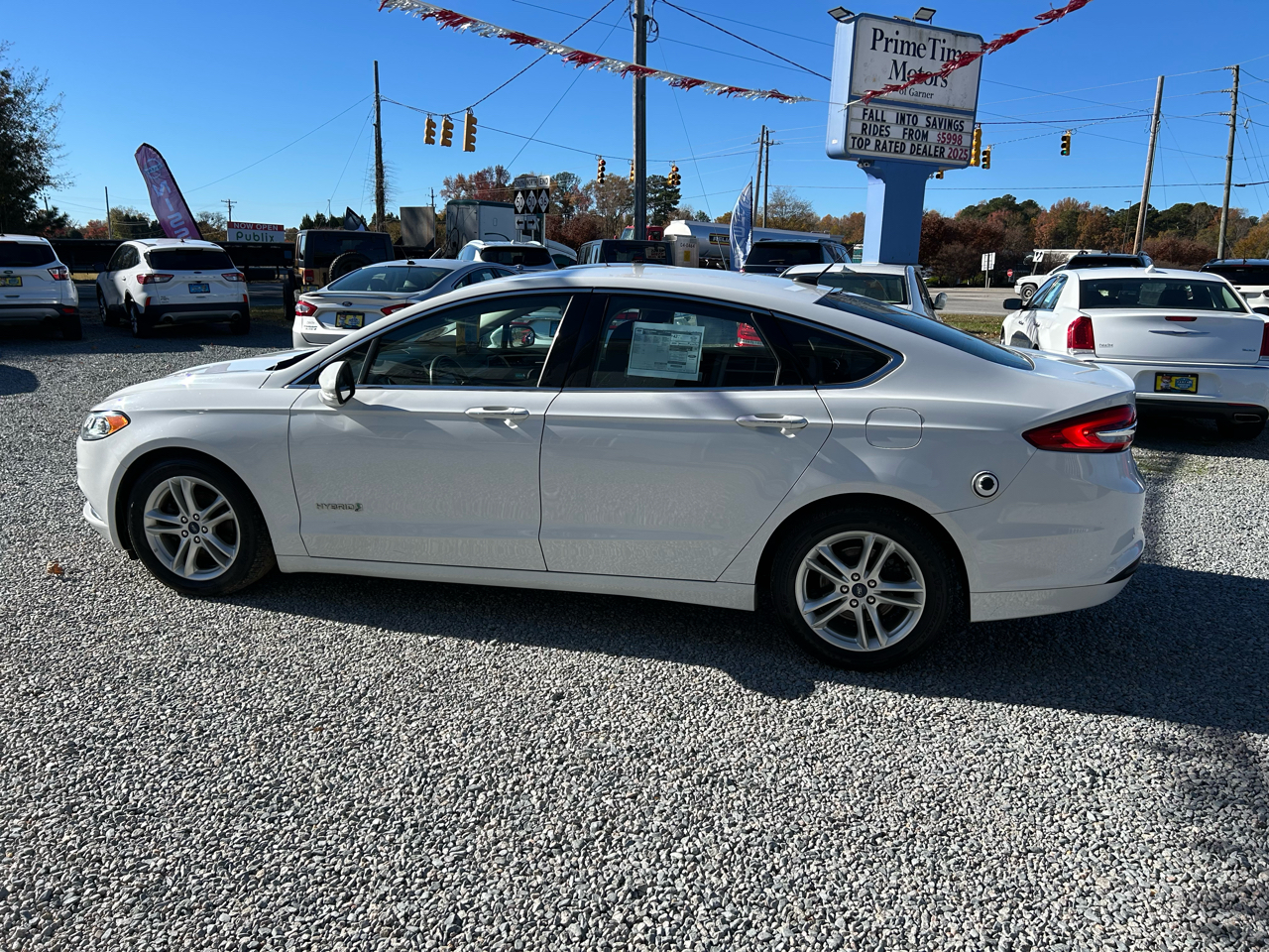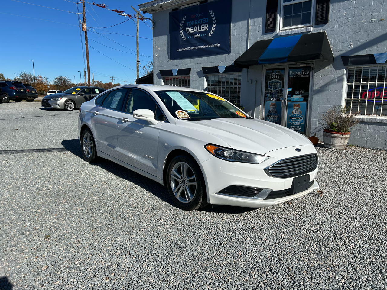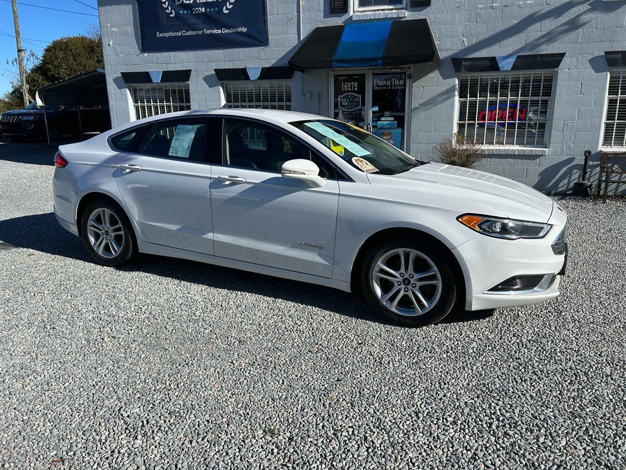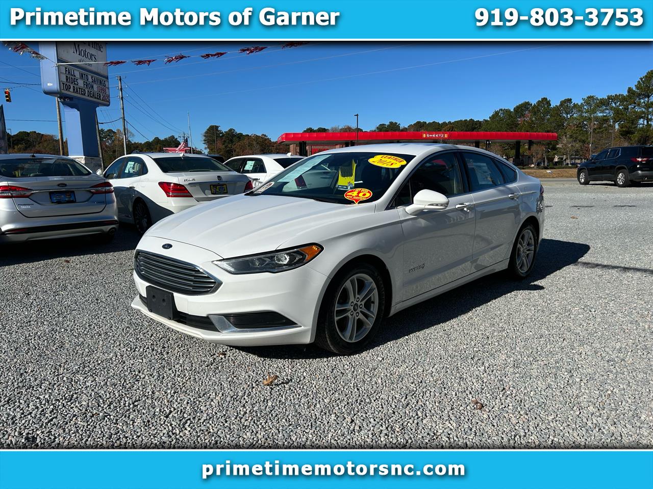 This 2018 Ford Fusion Hybrid SE is a 2 Owner Vehicle last owned in North Carolina with no accidents or damage and 4 service history records reported to Carfax. This vehicle is equipped with Heated Power Leather Seats, Sync Media Screen, Back UP Camera, Sirius XM Radio, Reverse Sensing System, Lane Keep Assist, Blind Spot Monitor, Cross Traffic Alert, Regenrative Braking System, Dual Zone Climate Control, Smart Key with Push Button Start, 17'' Aluminum Wheels and so much more. Our mission is to provide the highest quality vehicle at the best price. We strive to offer the best customer service possible by treating you as our number one priority. Come by today for your no obligation test drive and see how Primetime Motors of Garner will treat you like family and make you feel like you are right at home.