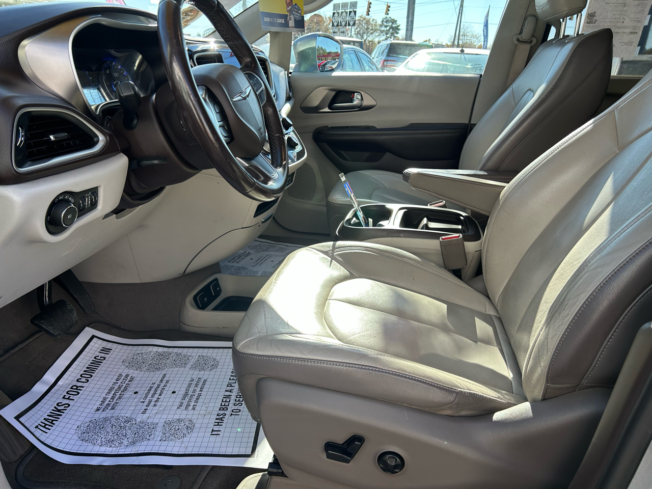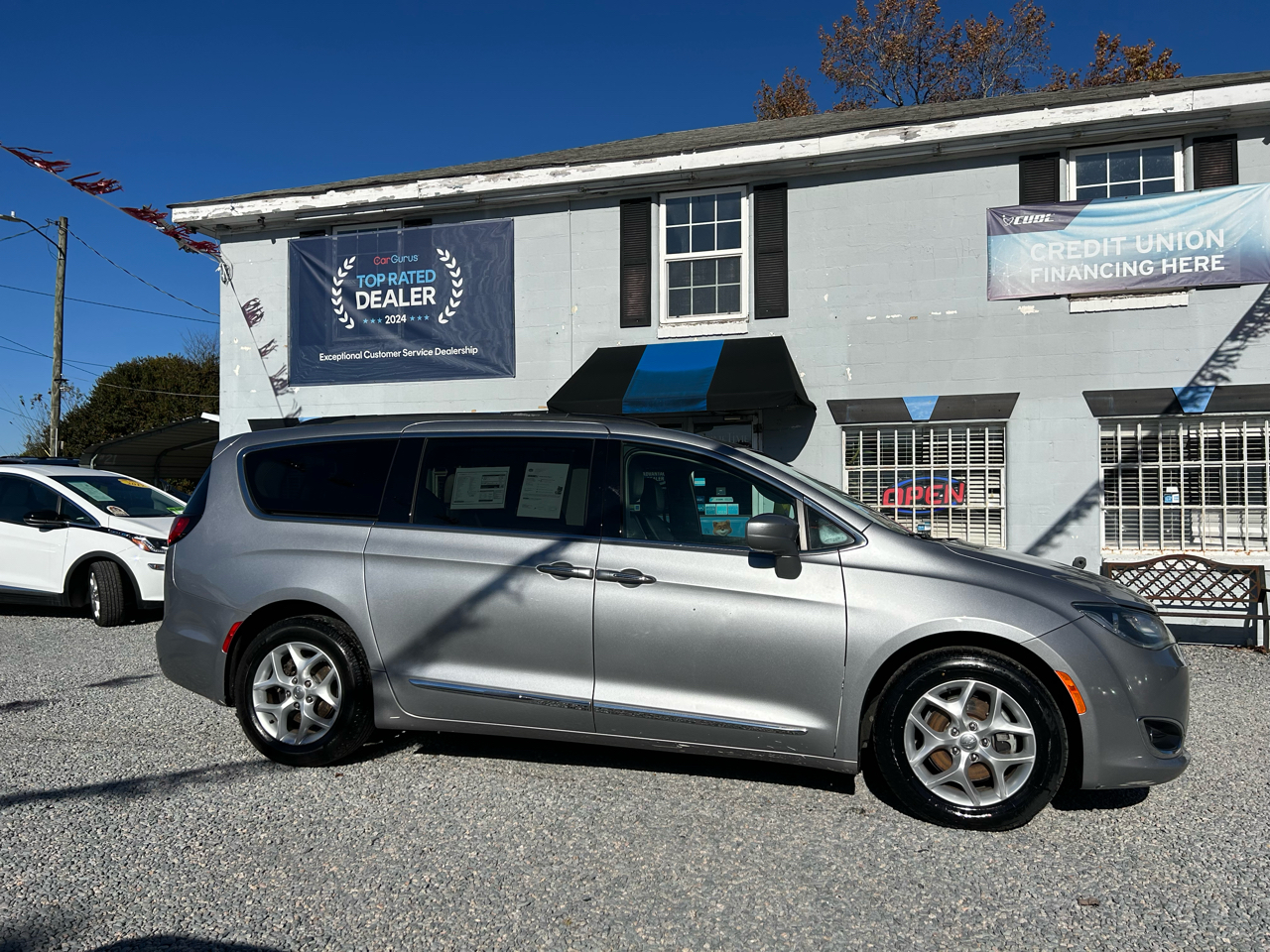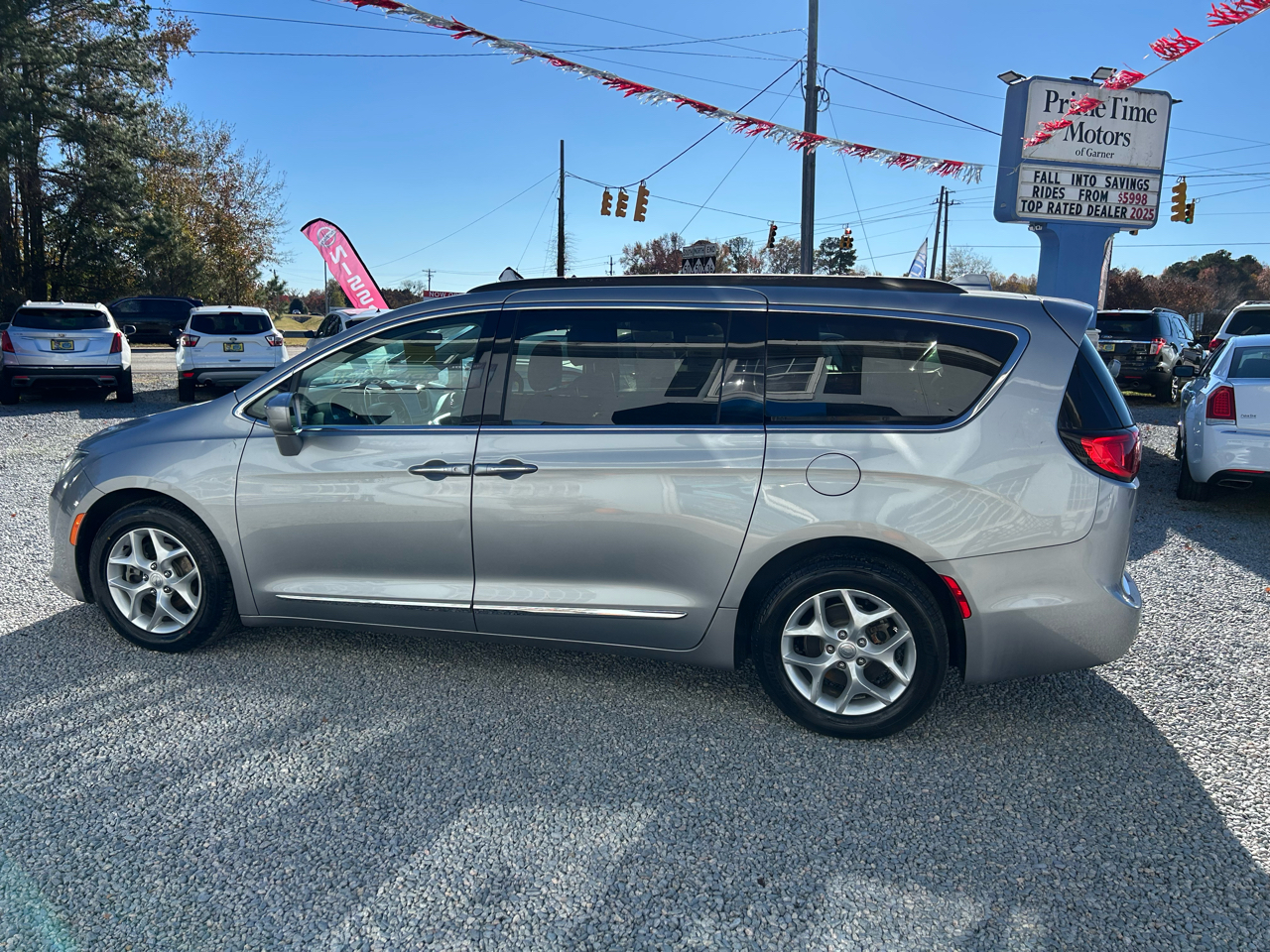 This 2017 Chrysler Pacifica Touring L is a 3 Owner Vehicle last owned in North Carolina with 5 service history records reported to CarFax. This vehicle is equipped with Power Leather Seats, 8.4'' Uconnect Display, Navigation, Sirius XM Radio, Bluetooth, Parksense Back Up Camera with Park Assist, Blind Spot Monitor, Rear Cross Path Detection, Remote Start, Smart Key with Push Button Start, Power Sliding Doors, Power Liftgate, Stow N Go Seating, Stow N Place Roof Rack, 18'' Wheels and so much more. Our mission is to provide the highest quality vehicle at the best price. We strive to offer the best customer service possible by treating you as our number one priority. Come by today for your no obligation test drive and see how Primetime Motors of Garner will treat you like family and make you feel like you are right at home.